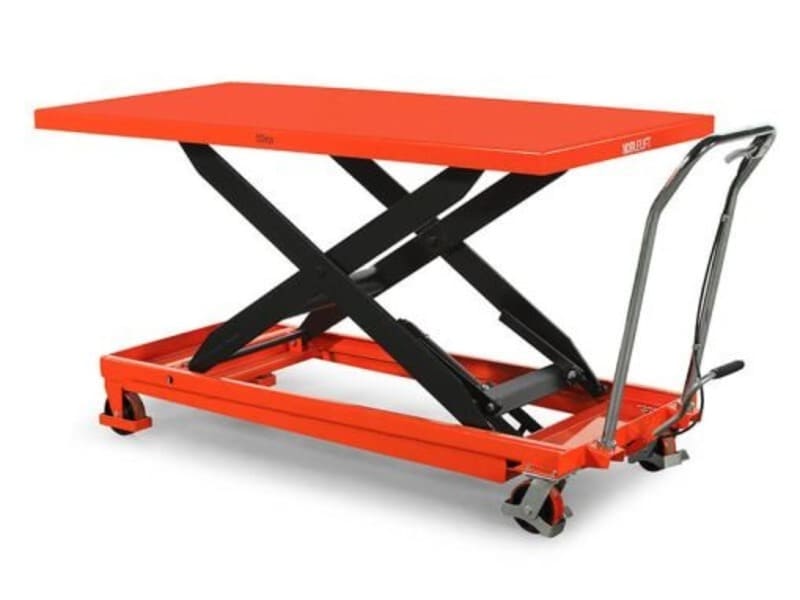 Xe nâng mặt bàn là sự kết hợp giữa bàn nâng và xe nâng, có thể nâng hạ đến độ cao cố định từ 800mm đến 1.8m. Với khả năng chịu tải lên đến 1 tấn, xe nâng mặt bàn thường được sử dụng để di chuyển hàng hóa lên các bàn làm việc hoặc các vị trí làm việc khác, mang lại sự thuận tiện cho các công việc cần nâng hạ liên tục.