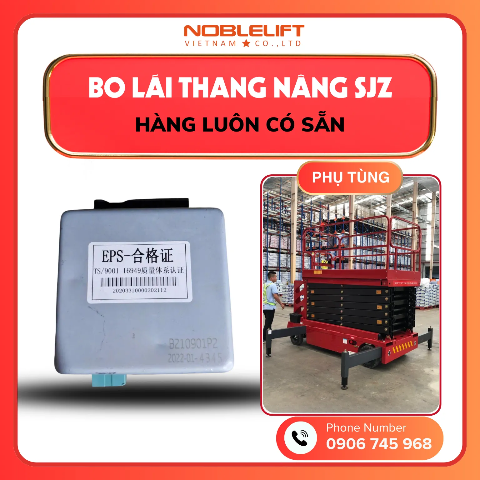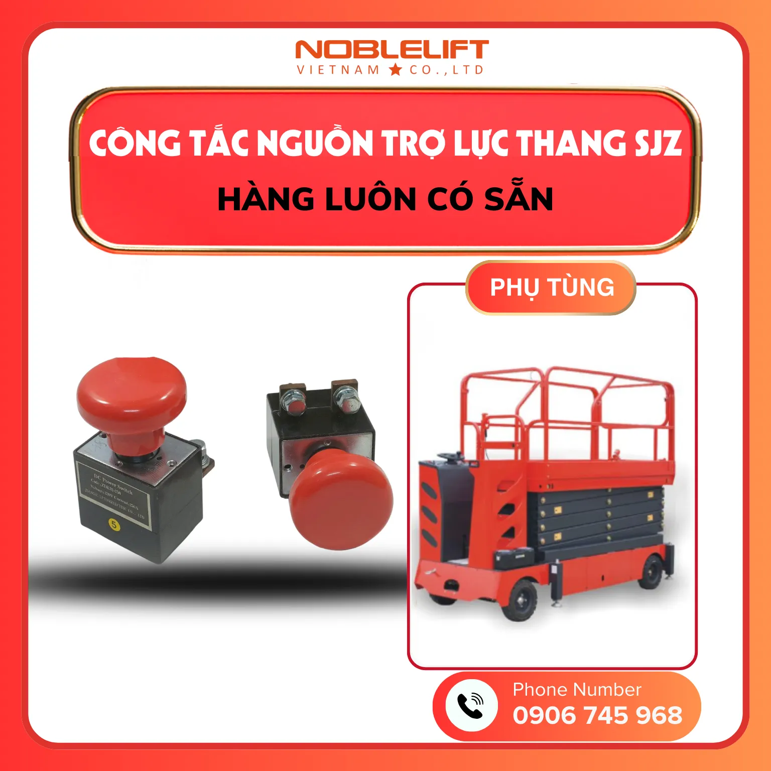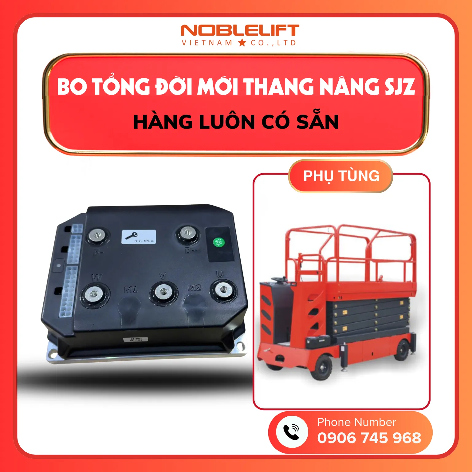 Noblelift là đơn vị cung cấp xe nâng và phụ tùng xe nâng uy tín, cam kết sản phẩm chính hãng, đồng bộ và phù hợp với từng model Thang Nâng Người SJZ. Đội ngũ kỹ thuật giàu kinh nghiệm của Noblelift luôn sẵn sàng tư vấn, hỗ trợ lựa chọn phụ tùng phù hợp và giải pháp bảo dưỡng hiệu quả. Liên hệ Noblelift ngay hôm nay để được báo giá chi tiết và hỗ trợ nhanh chóng cho nhu cầu phụ tùng Thang Nâng Người SJZ của bạn.