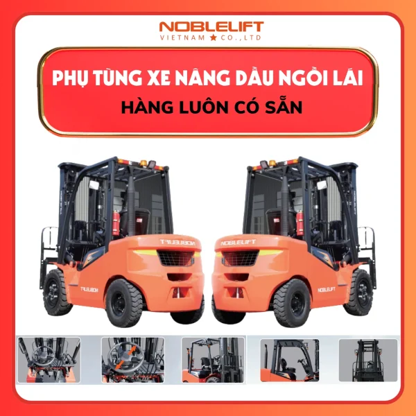 Phụ tùng xe nâng dầu ngồi lái CPCD20/25-AS1 Noblelift là dòng thiết bị vận hành mạnh mẽ, sử dụng động cơ dầu diesel công suất 36,8kW, dung tích xy lanh 2650 cm³, đạt tốc độ quay tối đa 2500 vòng/phút. Với tải trọng định mức 2000–2500 kg, chiều cao nâng 3000 mm và hệ thống lốp hơi chịu tải nặng, xe được thiết kế cho môi trường làm việc khắt khe. Để đảm bảo hiệu suất ổn định, từng phụ tùng từ bánh tải, ốp càng, ống bơm dầu đến vô lăng và quạt tản nhiệt đều phải đạt tiêu chuẩn cao về độ bền và độ chính xác. Việc lựa chọn và thay thế phụ tùng chính hãng giúp tăng tuổi thọ xe, giảm chi phí bảo dưỡng và đảm bảo an toàn trong suốt vòng đời vận hành.