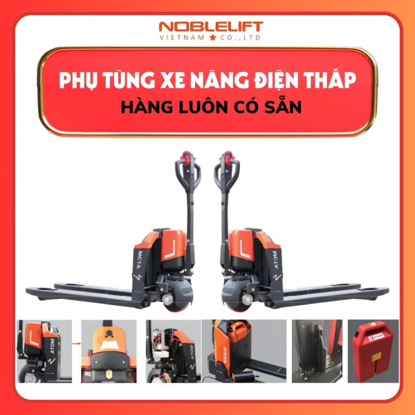 Trong quá trình vận hành xe nâng điện thấp, việc bảo trì và thay thế phụ tùng đúng tiêu chuẩn là yếu tố quyết định đến độ bền và hiệu suất làm việc của thiết bị. Dòng xe nâng điện thấp 1500 – 2000KG PTE15/20Q-A Noblelift được nhiều doanh nghiệp tin dùng nhờ khả năng di chuyển linh hoạt và tải trọng phù hợp cho kho bãi, trung tâm logistics. Để duy trì khả năng hoạt động ổn định, phụ tùng chính hãng đóng vai trò then chốt, giúp xe nâng luôn an toàn, tiết kiệm chi phí và hạn chế tối đa thời gian dừng máy. Các phụ tùng xe nâng thường bao gồm càng nâng, bánh xe, hệ thống phanh, bình điện, pin và nhiều chi tiết liên kết khác. Đây đều là những bộ phận quan trọng trực tiếp ảnh hưởng đến hiệu suất nâng hạ và độ an toàn khi vận hành. Việc lựa chọn phụ tùng chất lượng cao không chỉ giúp xe hoạt động bền bỉ mà còn kéo dài tuổi thọ tổng thể của thiết bị.
