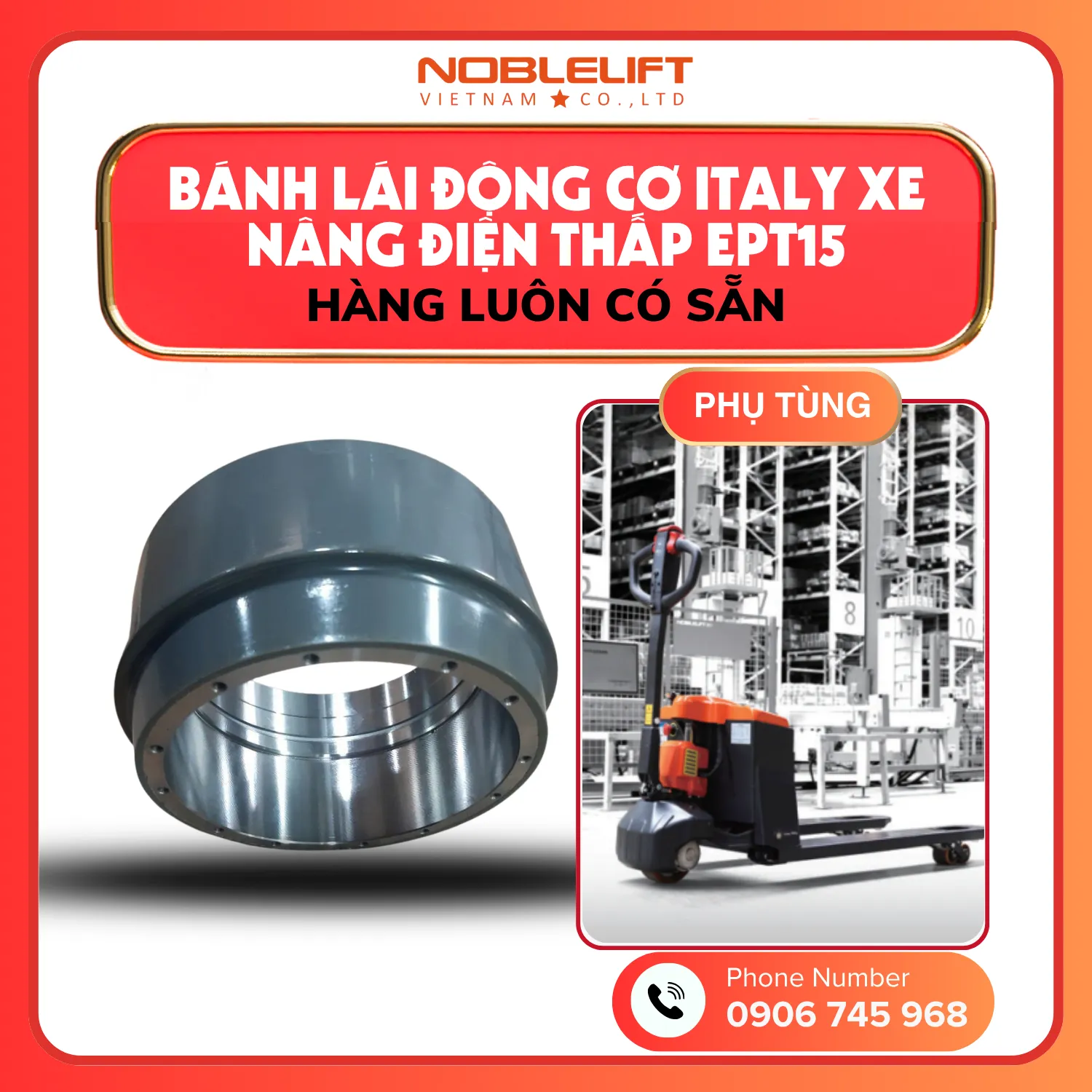Bánh lái tích hợp động cơ Italy là dòng phụ tùng cao cấp giúp xe nâng điện thấp EPT15Q di chuyển linh hoạt và ổn định hơn trong nhiều điều kiện làm việc khác nhau. Với thiết kế tích hợp motor trực tiếp vào bánh, lực truyền được tối ưu, giảm thất thoát năng lượng và nâng cao hiệu suất vận hành.