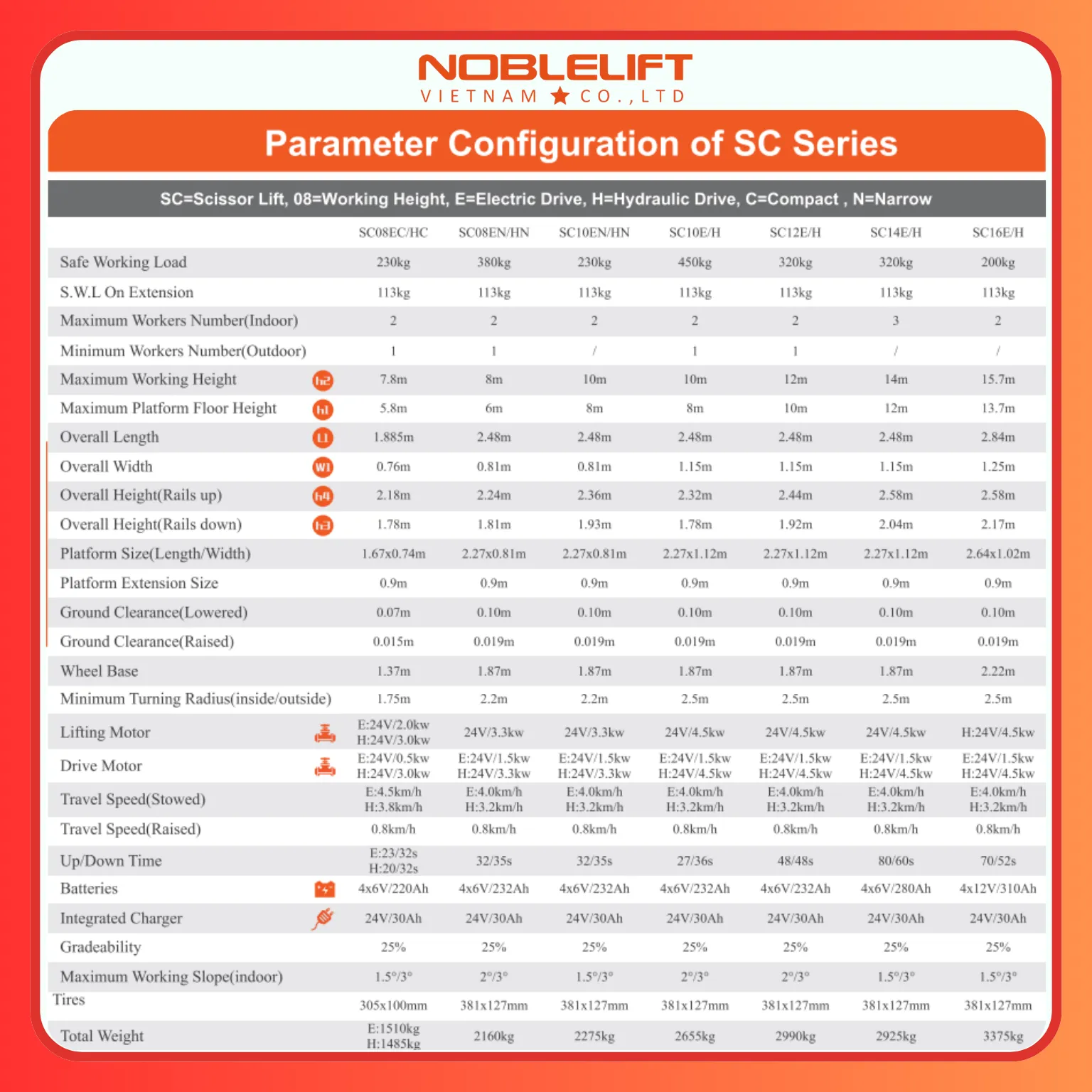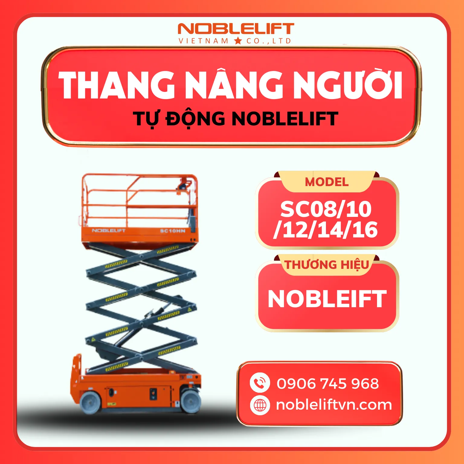 CÔNG TY TNHH NOBLELIFT VIỆT NAM tự hào là nơi bán các dòng thang nâng người tự động 8-15M SC08/10/12/14/16 Noblelift có chất lượng tốt nhất với giá thành vô cùng hấp dẫn. Khi tìm đến đơn vị của chúng tôi, bạn sẽ hoàn toàn yên tâm. Noblelift Việt Nam đảm bảo cung ứng dòng thiết bị tốt nhất, mang lại hiệu quả hoạt động và làm việc cao. Nếu quý khách cần tư vấn và nhận báo giá cụ thể thì mời liên hệ cho công ty qua các đầu số hotline sau để được hỗ trợ nhanh chóng nhé!