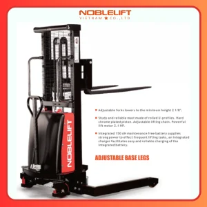 Xe nâng bán tự động 1000kg 1.6 – 3.5M SPN10SL Noblelift là lựa chọn tối ưu cho nhu cầu nâng hạ và di chuyển hàng hóa trong kho bãi, nhà xưởng có không gian linh hoạt. Dòng sản phẩm này được thiết kế với khả năng thay đổi chiều rộng chân đế, giúp xe dễ dàng thích ứng với nhiều kích thước pallet và môi trường làm việc khác nhau. Với tải trọng 1000kg, xe đảm bảo hiệu quả vận hành ổn định, an toàn và phù hợp cho các công việc bốc xếp có tần suất thường xuyên.