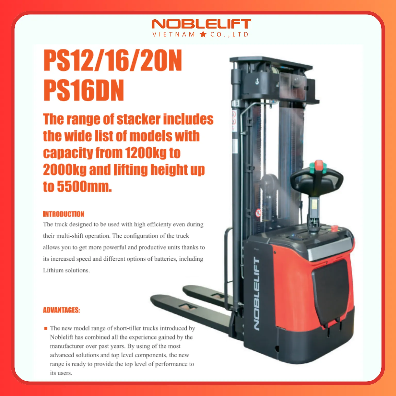 Xe nâng Noblelift PS16N và PS20N là lựa chọn lý tưởng cho nhiều ngành nghề như:
