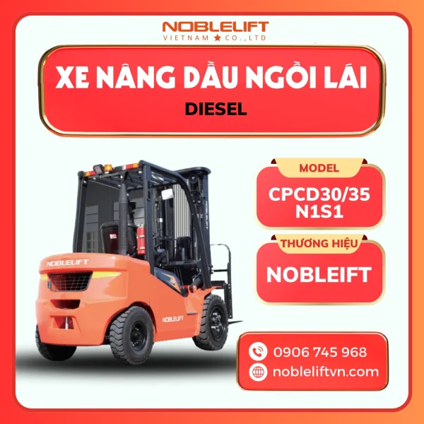 Xe nâng dầu ngồi lái 3000-3500kg CPCD30/35-N1S1 Noblelift là hai model thuộc dòng xe nâng ngồi lái sử dụng động cơ diesel mạnh mẽ, đáp ứng nhu cầu nâng hạ tải trọng từ 3000kg đến 3500kg. Với thiết kế chắc chắn, khung sườn bền bỉ và hệ thống truyền động ổn định, hai model này được ứng dụng phổ biến trong các ngành công nghiệp, kho bãi, logistics và bến cảng.