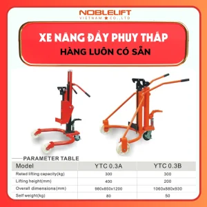 Xe nâng đẩy phuy thấp 300kg YTC 0.3A Niuli là thiết bị chuyên dụng để di chuyển, xoay chuyển và sắp xếp các loại phuy tiêu chuẩn 200 lít chứa dầu, hóa chất, sơn, dung môi hoặc các loại chất lỏng khác. Với tải trọng nâng tối đa 300kg, xe giúp người lao động dễ dàng xử lý phuy nặng mà không tốn nhiều sức, đồng thời đảm bảo an toàn trong quá trình vận chuyển.