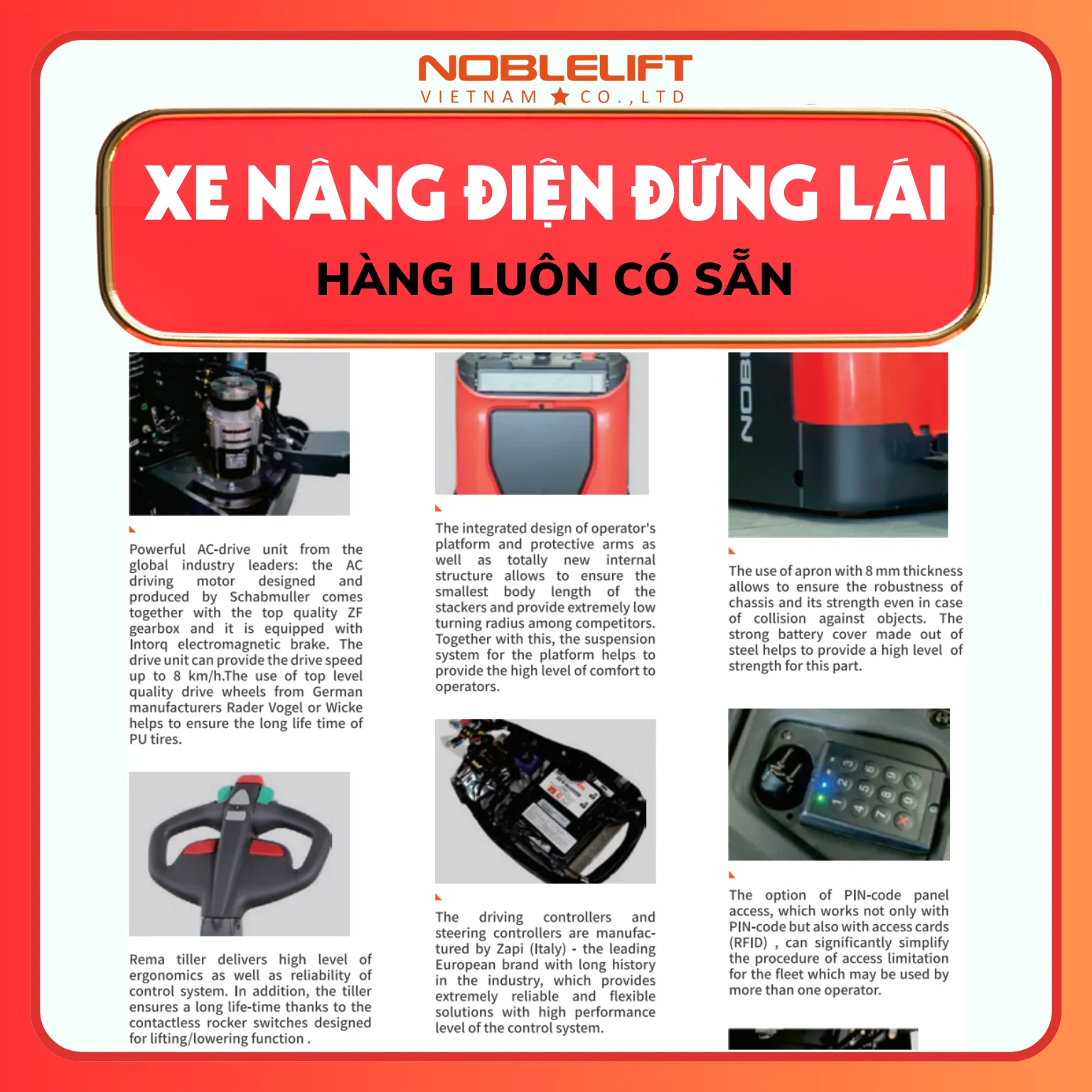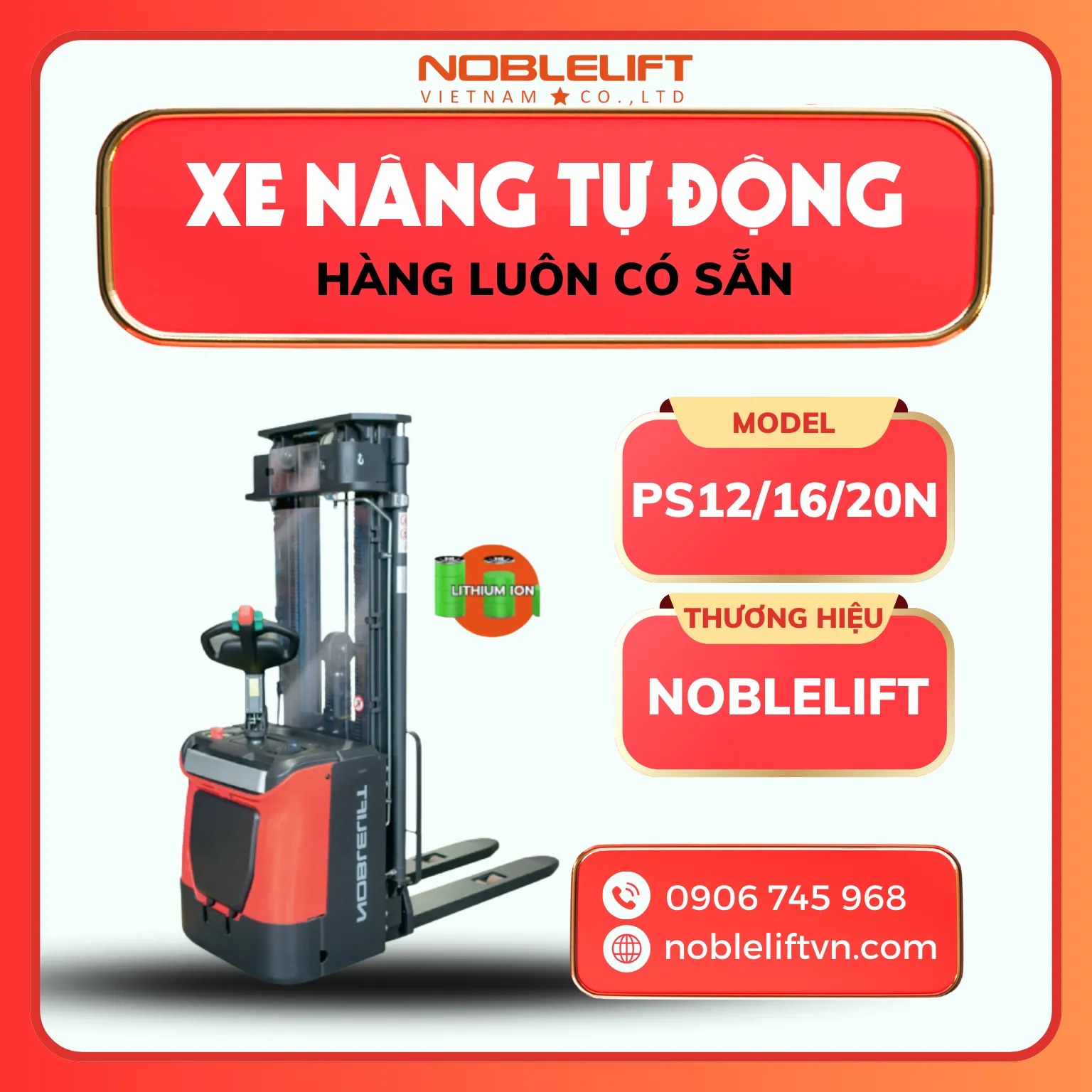 Dòng xe nâng tự động đứng lái 1200-2000kg PS12N, PS16N và PS20N Noblelift là thế hệ stacker điện hiện đại, được thiết kế để đáp ứng nhu cầu nâng hạ và di chuyển pallet trong kho bãi, siêu thị, trung tâm logistics và nhà xưởng sản xuất.