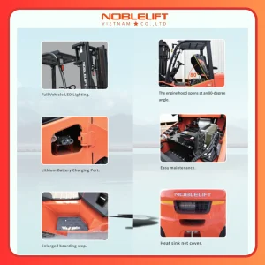 Xe nâng điện ngồi lái 3000-3800kg CPD30/35/38-AF1S Noblelift bao gồm ba model chính: CPD30AF1S, CPD35AF1S và CPD38AF1S. Đây là những mẫu xe thuộc phân khúc tải trọng trung – nặng, được thiết kế để tối ưu hiệu suất trong các nhà máy, kho bãi và trung tâm logistics. Điểm chung nổi bật của bộ ba sản phẩm này chính là việc trang bị pin Lithium Iron Phosphate (LFP), giúp sạc nhanh, an toàn, thân thiện môi trường và có tuổi thọ vượt trội so với pin chì truyền thống. Ngoài ra, khung gầm và hệ thống vận hành được cải tiến để đảm bảo sức bền, tính ổn định và độ an toàn cao trong mọi điều kiện làm việc. Đây là lựa chọn lý tưởng cho doanh nghiệp muốn đầu tư vào một thiết bị nâng hạ hiện đại, tiết kiệm chi phí vận hành và đem lại năng suất bền vững.