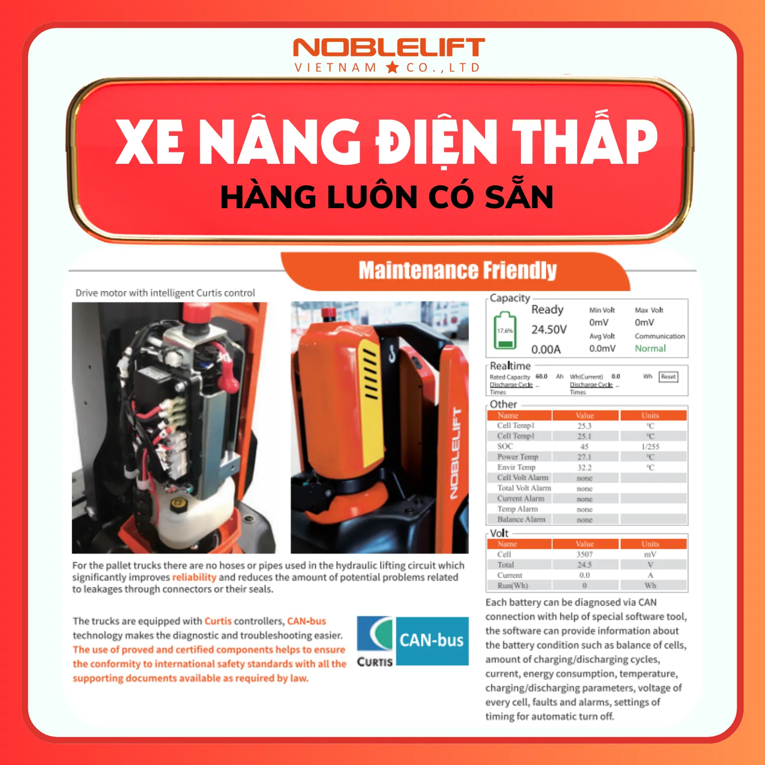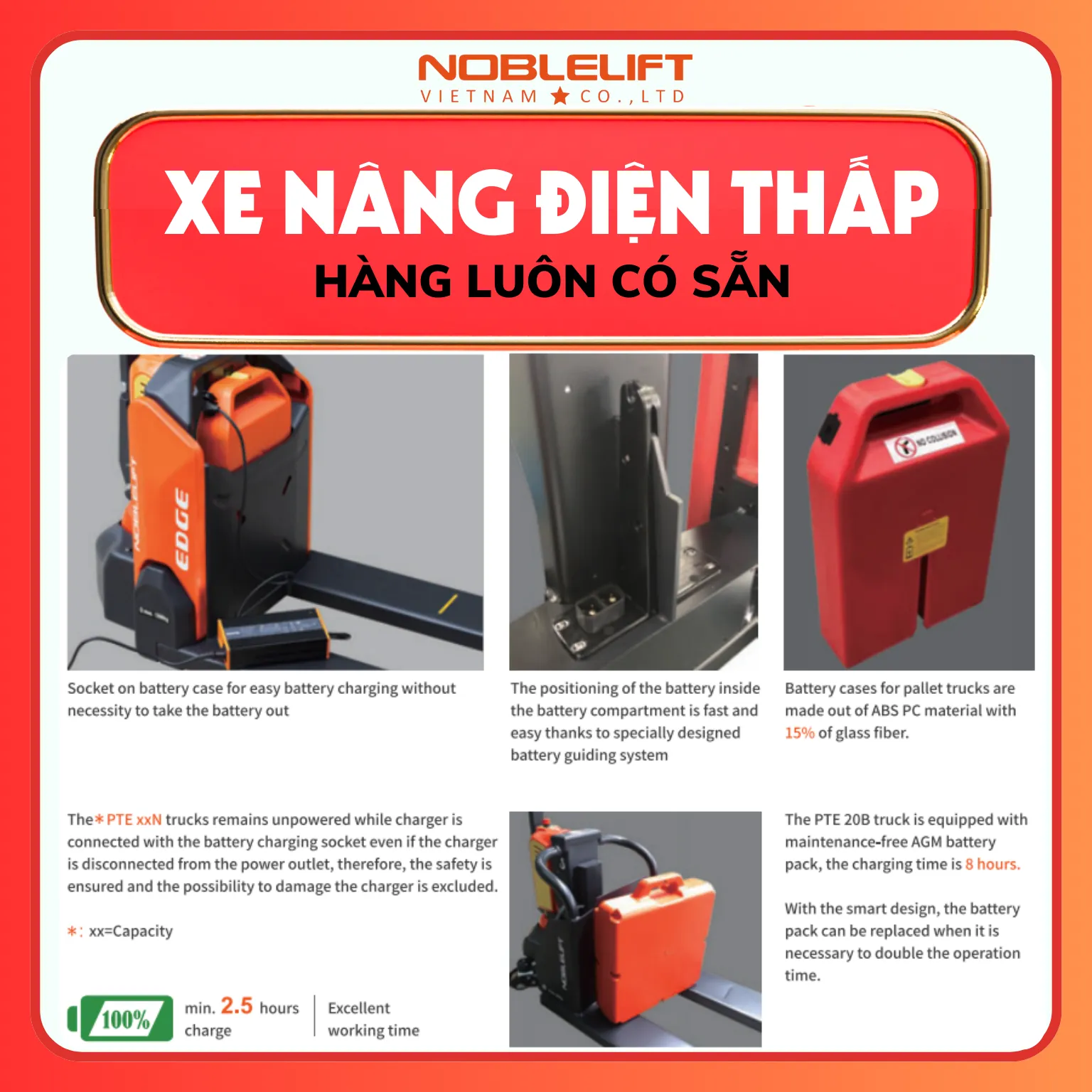 Xe nâng điện thấp 1.5-2 Tấn PTE15N VÀ PTE20N Noblelift