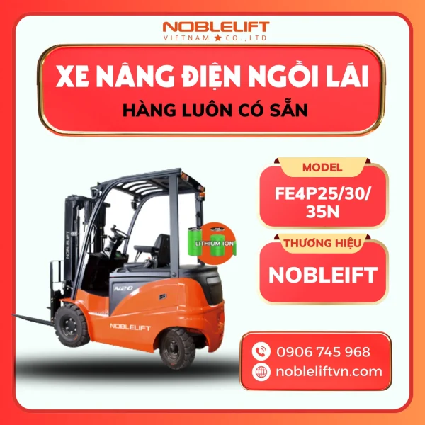 Nếu doanh nghiệp bạn đang tìm kiếm một dòng xe nâng điện vừa bền bỉ, vừa tiết kiệm và thân thiện môi trường, xe nâng điện ngồi lái 2500-3500kg FE4P25/30/35N Noblelift chính là lựa chọn hoàn hảo. Hãy liên hệ với Noblelift Việt Nam để được tư vấn chi tiết, nhận báo giá cạnh tranh và trải nghiệm công nghệ nâng hạ hiện đại nhất hiện nay!