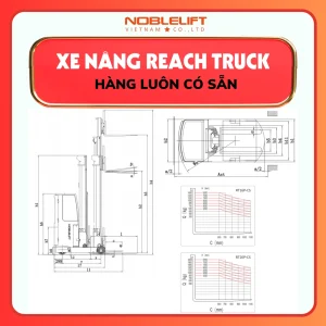 – Tải trọng (Load capacity): Khả năng nâng hàng hóa của dòng reach truck Noblelift có thể lên đến 4 đến 5m tùy model. Tuy nhiên, chiều cao nâng càng cao thì tải trọng nâng càng giảm.