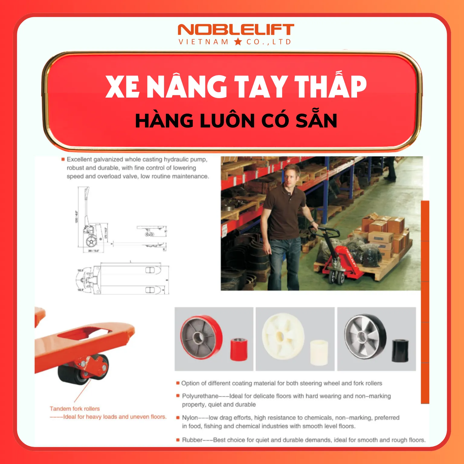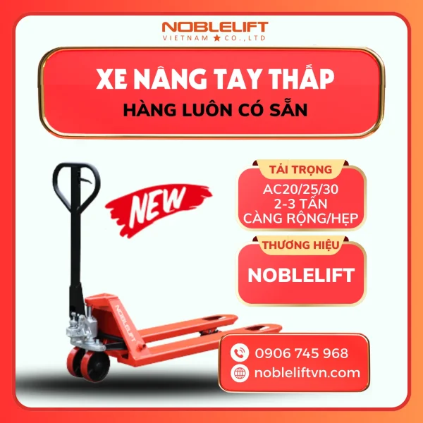 Ở đâu bán xe nâng tay thấp càng rộng/hẹp 2-3 tấn AC20/25/30 Noblelift chính hãng?