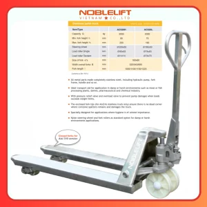 Bảng thông số xe nâng tay thủy lực Inox 2500kg ACS20/25 Noblelift