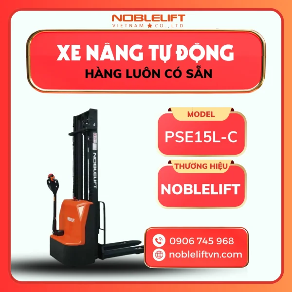 Xe nâng tự động đứng lái 1500kg PSE15L-C Noblelift là một trong những dòng xe nổi bật của Noblelift, được sản xuất tại nhà máy Trung Quốc với tiêu chuẩn chất lượng quốc tế. Đây là thiết bị vận hành hoàn toàn bằng điện, từ nâng hạ đến di chuyển, giúp tối ưu hiệu quả làm việc trong các nhà kho, xưởng sản xuất, siêu thị và khu công nghiệp. Nhờ khả năng nâng hàng hóa lên đến 1500kg và đạt chiều cao tối đa 3600mm, chiếc xe này mang đến sự linh hoạt trong việc sắp xếp và bốc dỡ hàng hóa ở nhiều vị trí khác nhau. Với thiết kế nhỏ gọn, dễ điều khiển theo dạng đi bộ lái, PSE15L-C trở thành lựa chọn tối ưu cho những không gian có lối đi hẹp nhưng vẫn cần sự mạnh mẽ và bền bỉ trong vận hành.